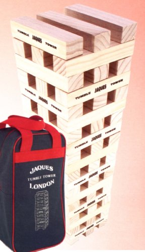 A superb magnum-sized version our medium sized of this popular indoor game Complete with canvas carry bag Jaques Mid-Size Tumble Tower is a great game for the whole family 65 blocks total Block size 147 x 34 x 28 mm approx 5 34 x 1 14 x 1 inches Handcrafted from New Zealand Pine in canva Read More..
