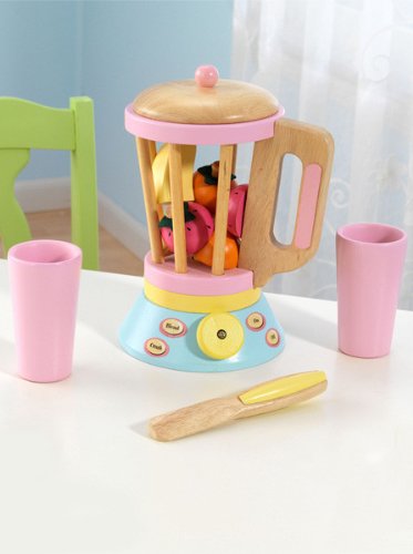 Fruit Smoothies are all the rage With this Pastel Smoothie Set kids can now pretend to make their own healthy drinks This wooden 12 piece set would be a great addition to any pretend kitchen Includes blender that lifts off the base and a knob that turns 6 fruit halves attached by Velcro and can Read More..