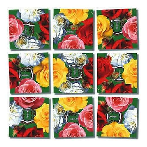 Scramble Squares Roses The object of the Scramble Squares puzzle game is to arrange the nine colorfully illustrated square pieces into a 12 x 12 square so that the realistic graphics on the pieces edges match perfectly to form a completed design in every direction The full 9-piece puzzle cre Read More..