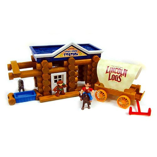 First stop on the wagon trail Lincoln Logs Stagecoach Station This building set includes real wood logs plus colorful figures and accessories even a covered wagon When playtime is over put the parts back into the handy storage container for a quick and easy clean-up Lincoln Logs Stage Read More..